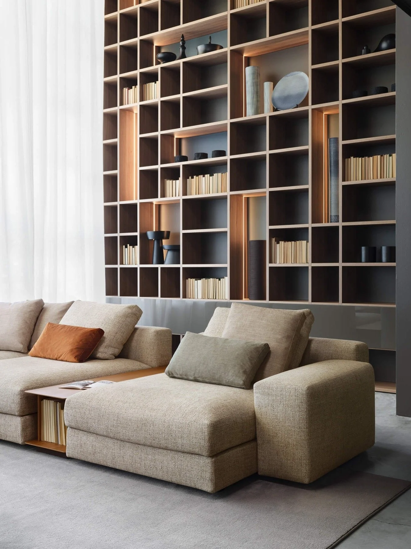 In the early ’70s, Lema was the first Italian company to design and produce integrated furniture systems, managing the entire production cycle internally, from the search for raw materials, to processing, right up to the finished product. Today, the Italian company boasts in the heart of Brianza a covered industrial production plant of 55,000 square metres, divided between the two plants, one in Alzate Brianza (CO) and one in Giussano (MB), designed by Arch. Angelo Mangiarotti with over 250 employees, and a network of approximately 1,000 resellers distributed in 65 countries around the world.